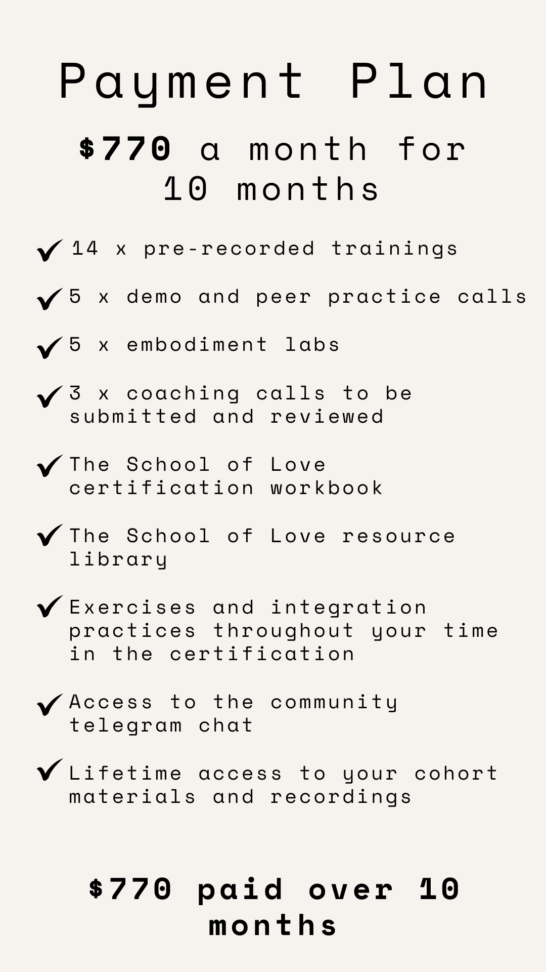 Yes! To secure your spot, a $1,000 deposit is required (non-refundable) and then the balance can be paid monthly with your last payment ending by the end of the Certification.